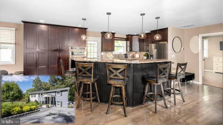 Motivated Sellers !! HUGE PRICE DROP- **Check out the Video Tour**Welcome home to this beautiful property situated on nearly half an acre on a quiet street in a desirable water-oriented community within the Chesapeake school district. The exterior features lush, mature landscaping, a detached 2-car garage at the end of a long driveway—ideal for boats, RVs, and recreational vehicles—plus an additional parking pad with a stamped concrete walkway leading to the backyard. The FULLY FENCED yard provides plenty of space for children and pets, and the rear Trex deck with built-in seating offers the perfect spot for entertaining. This home was completely renovated in 2014 with a large addition added, plus NEW windows, NEW ROOF, NEW Gutters, Plumbing, Electrical, and Custom lighting. The addition has since been finished, adding 2 more bedrooms and additional living space. Inside, the upper level offers an open floor plan with Hardwood floors, a kitchen with 42” cabinetry, Stainless Steel Appliances, Granite countertops, and a spacious bar-height island with seating for five, open to the dining and living areas. The primary suite features a Newly Renovated Bathroom, and NEW HVAC system was just replaced in June 2025. The lower level includes two additional bedrooms, a secondary living area, a walkout to the backyard, and a laundry room. Additional highlights include a newer 250’ Well, NEWER septic system with an Advanced Hoot system, and a prime location just minutes to restaurants, marinas, parks, and the Bodkin Yacht Club. Move-in ready and beautifully updated, this home is ready to welcome its next owners.