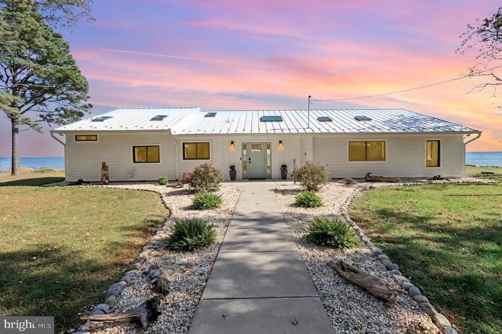 Set on 600 feet of prime Chesapeake Bay shoreline with its own private beach and tidal pond, this exceptional 4-bedroom, 3-bath coastal retreat offers a rare blend of serenity, natural beauty, and adventure. From the moment you arrive, endless water views and the soothing rhythm of gentle waves create an atmosphere of complete peace. Bald eagles soar overhead, dolphins playing, otters, turtles, herons and a plethora of wildlife to watch as nature truly surrounds you here. Step through the front entry where natural light fills the space and take in the panoramic water views that define nearly every room. The open-concept main living area features luxury vinyl wide plank flooring, skylights, recessed lighting, and an airy layout perfect for both relaxing and entertaining. The spacious family room flows seamlessly to the large waterside patio, where you can enjoy unobstructed views of the Chesapeake Bay and watch as the Smith Point Lighthouse begins to send beacons of light at dusk. End your evenings by the firepit under a canopy of stars, listening to the gentle waves lapping on the rocks. The kitchen & dining area is tastefully designed with simplicity & functionality in mind, boasting quartz countertops, a large island for all your hosting needs and meal prep, stainless steel appliances, recessed lighting & modern fixtures amplify the space, white shaker wood cabinetry with soft close doors & dovetail drawers. Ample storage in the built in pantries & a large walk in pantry and/or storage room just around the corner. Just off the kitchen, two inviting bedrooms feature luxury vinyl wide plank flooring, ceiling fans, and windows framing views of the private beach & Bay. A full bath with custom tile flooring and a shower/tub combo completes this wing. As you leave the dining area you are greeted once again with stunning Bay views from the flex room that can be a reading/sitting area, game room, study or whatever you want the space to be. The flex space connects to another flex room which leads you out to a second patio, perfect for outdoor dining. Back inside off the family room, conveniently located is a large full bath boasting custom tiled floors and shower, spacious laundry area and stylish finishes. A third bedroom, filled with natural light from a skylight, continues the home’s thoughtful design with recessed lighting and luxury vinyl wide plank flooring. Next up, the luxurious primary suite which is a true retreat. Wake each morning to the sun rising from the east illuminating the Chesapeake Bay right outside the wall of windows. The ensuite boasts a large walk-in tiled shower, double bowl vanity outlined by board and batten trim, a private linen closet, and a spacious walk-in closet with custom shelving. Step out onto your private patio to enjoy morning coffee, fresh air and unwind at night as ships pass by illuminating their path. Beyond the driveway lies the property’s tidal pond, a peaceful haven for herons, otters, and a beloved family of alligator snapping turtles who make a seasonal visit to enjoy the ripened persimmons. Just past the pond, your private beach awaits—ideal for kayaking, paddle boarding, fishing, sailing, or simply soaking in the sun and vitamin sea!!! This is your opportunity to own one of the most amazing properties on the Northern Neck. And just think, you could be in for Thanksgiving!!!