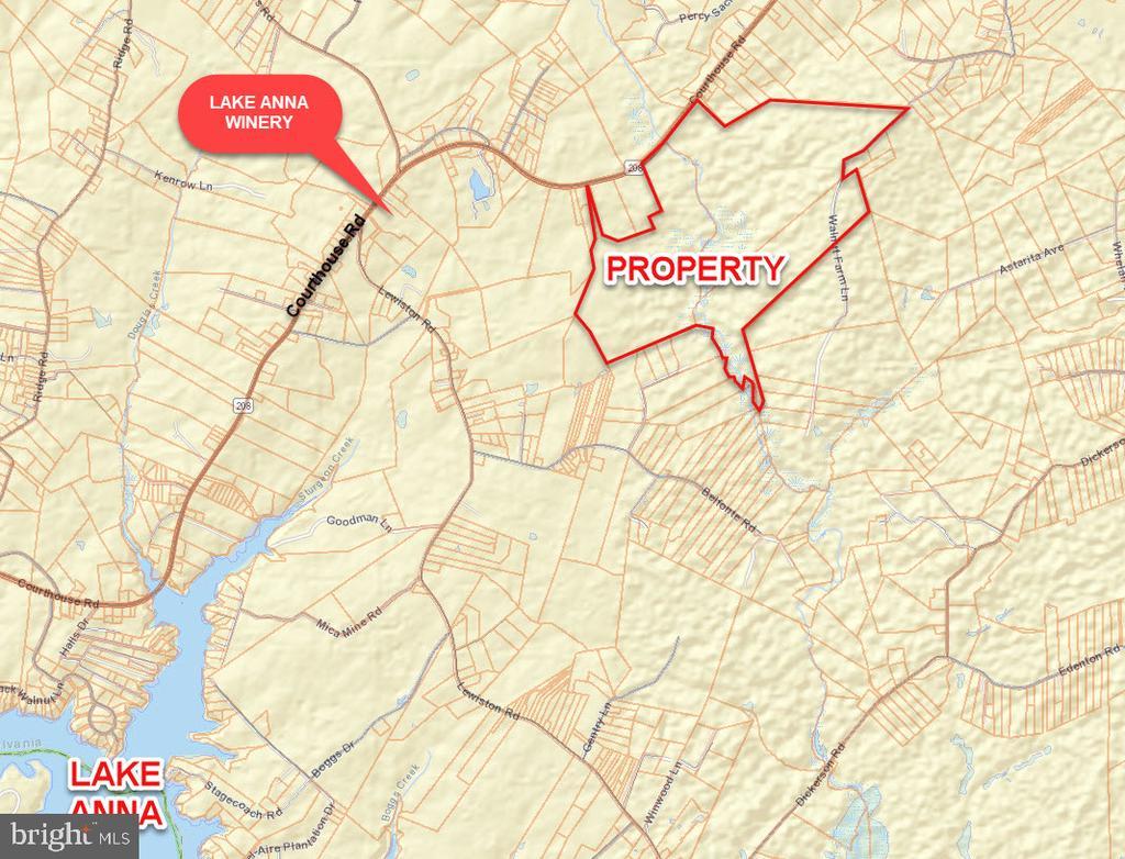 A 628.80 acre assemblage that is conveniently located with frontage on a major regional thoroughfare, Courthouse Road, that has an average daily traffic count of 9,100 vehicles per day. The property is located two minutes from Lake Anna and Lake Anna State Park. The property can be subdivided by-right into 30 10-acre lots. Noted permitted uses include: agriculture, bed and breakfast, single family detached dwellings, equestrian facility, game preserves, garden center, golf driving range. Noted Special Uses include: animal shelter, assisted living facility, camp or recreation ground, community center, golf course and clubhouse, livestock exchange, lumber yard, place of worship, private school, public school, religious retreat center, solar energy facility.
